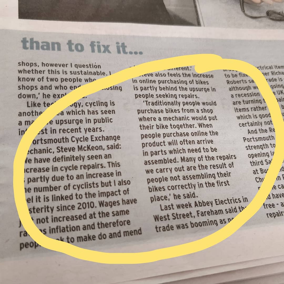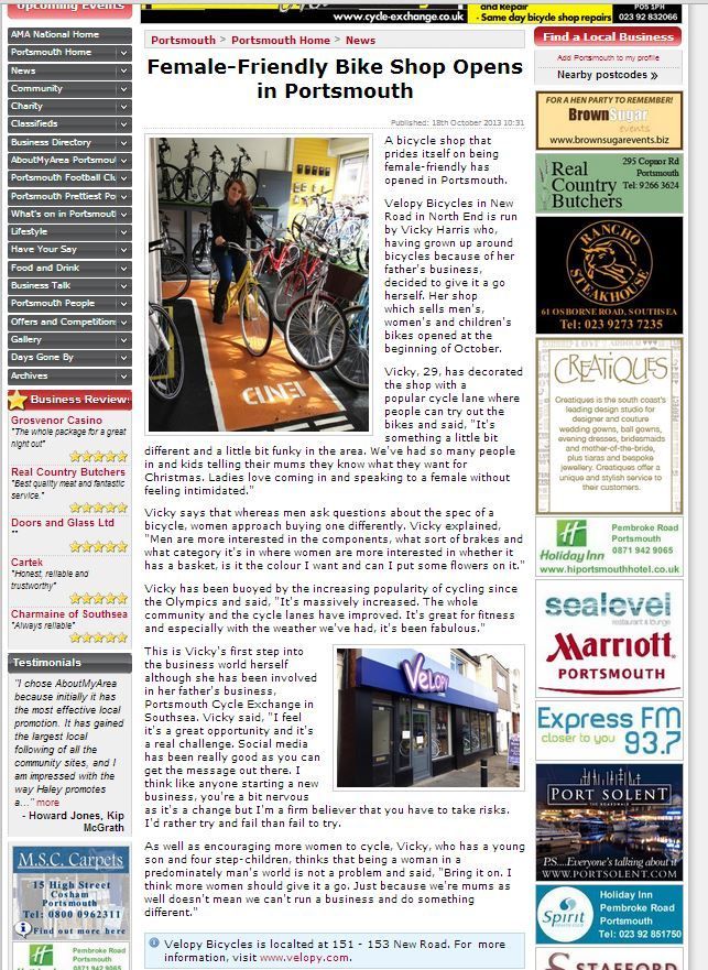 Portsmouth Cycle Exchange and Velopy have proudly been mentioned a number of times over the years in articles.